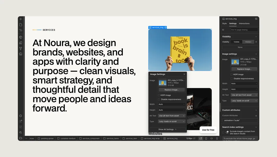 Noura is a modern Webflow template designed for creative agencies and independent designers.